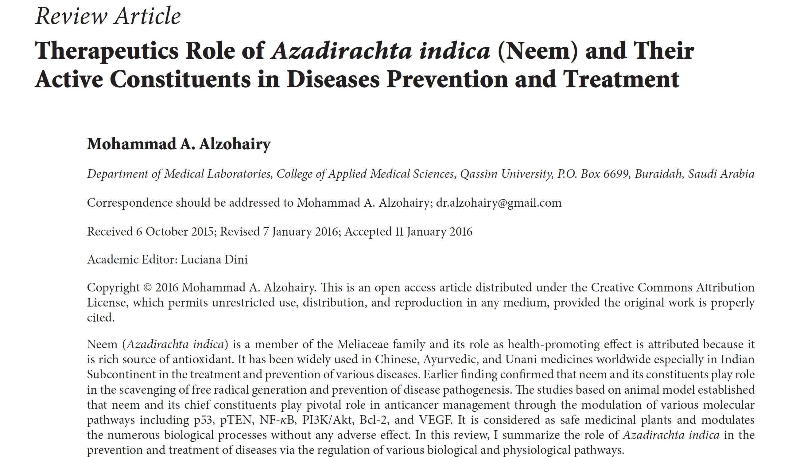 Subcontinent in the treatment and prevention of various diseases. Earlier finding confirmed that neem and its constituents play role